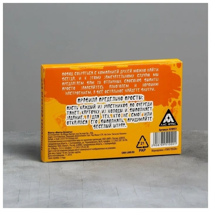 Купить игра для компании "фанты буханты" 20 карт от 100 руб. с доставкой до пункта выдачи в Грайвороне. Интернет магазин ДекаМаркет. Оплата при получении.