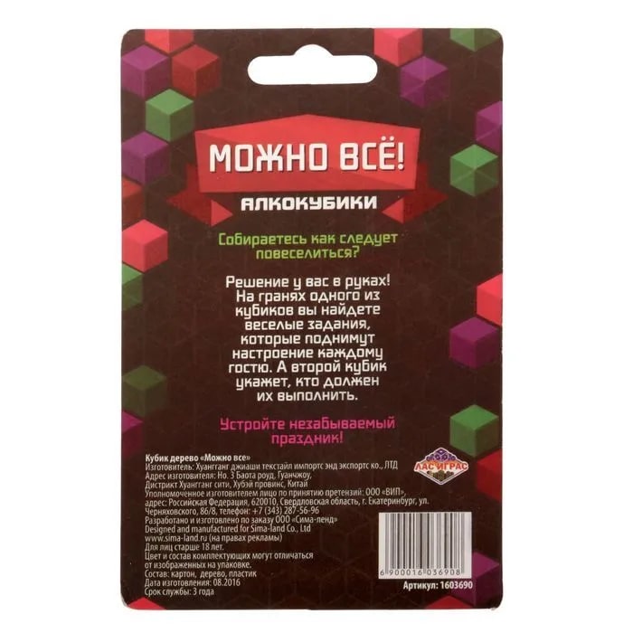 Купить кубик "можно все", алкокубики для принятия решений от 60 руб. с доставкой до пункта выдачи в Грайвороне. Интернет магазин ДекаМаркет. Оплата при получении.